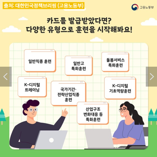새로운 분야로 취업하고 싶거나, 취업에 대한 불안감이 있으신가요? 그렇다면 내일배움카드로 해결해보세요. 저도 내일배움카드로 훈련 받아 성공적으로 취업했어요. 빠른 취업을 위해 오늘 글을 읽고 내일배움카드를 신청해보세요