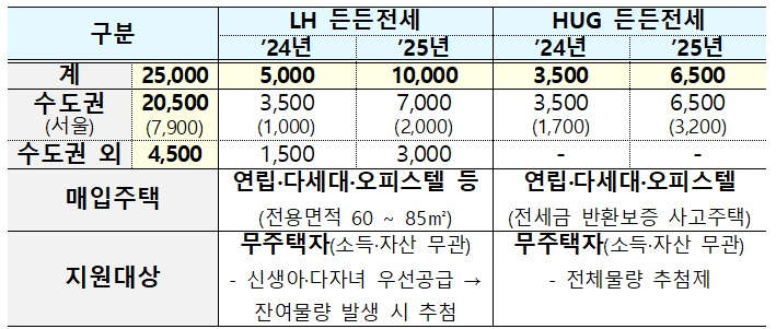 LH 든든전세주택은 무주택 중산층을 대상으로 시세의 90% 이하 수준의 전세로 공급되는 주택입니다. 도심 내 넓고 쾌적한 신축주택을 매입하여 중산층 가구에게 시중 시세의 90% 이하 수준으로 임대합니다. 한국토지주택공사(LH)와 주택도시보증공사(HUG) 등 공공기관이 전세금을 받아 연립, 다세대, 오피스텔을 저렴하게 공급하는 공공임대주택으로 최대 8년간 거주할 수 있습니다. 7월 24일부터 7월 26일까지 단 3일 동안만 신청을 받으니, 서둘러 공고를 확인하고 신청하시기 바랍니다. 안정적인 주거 환경을 찾고 있다면, LH 든든전세주택이 좋은 선택이 될 것입니다. 오늘 글이 여러분들께 도움이 되었으면 좋겠습니다.